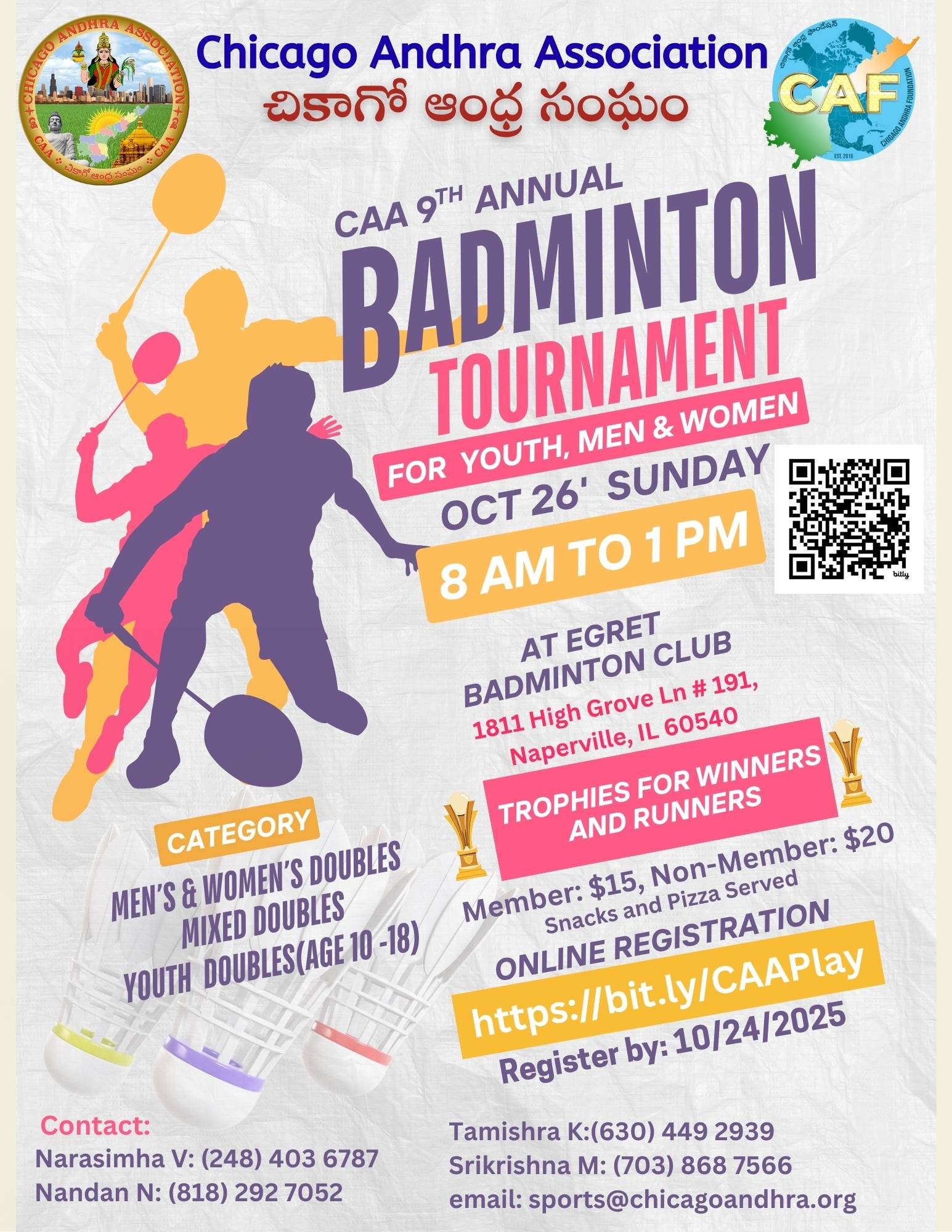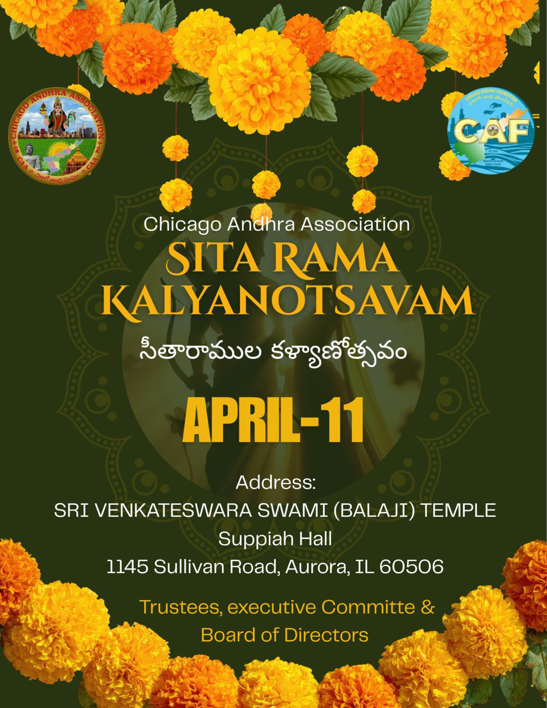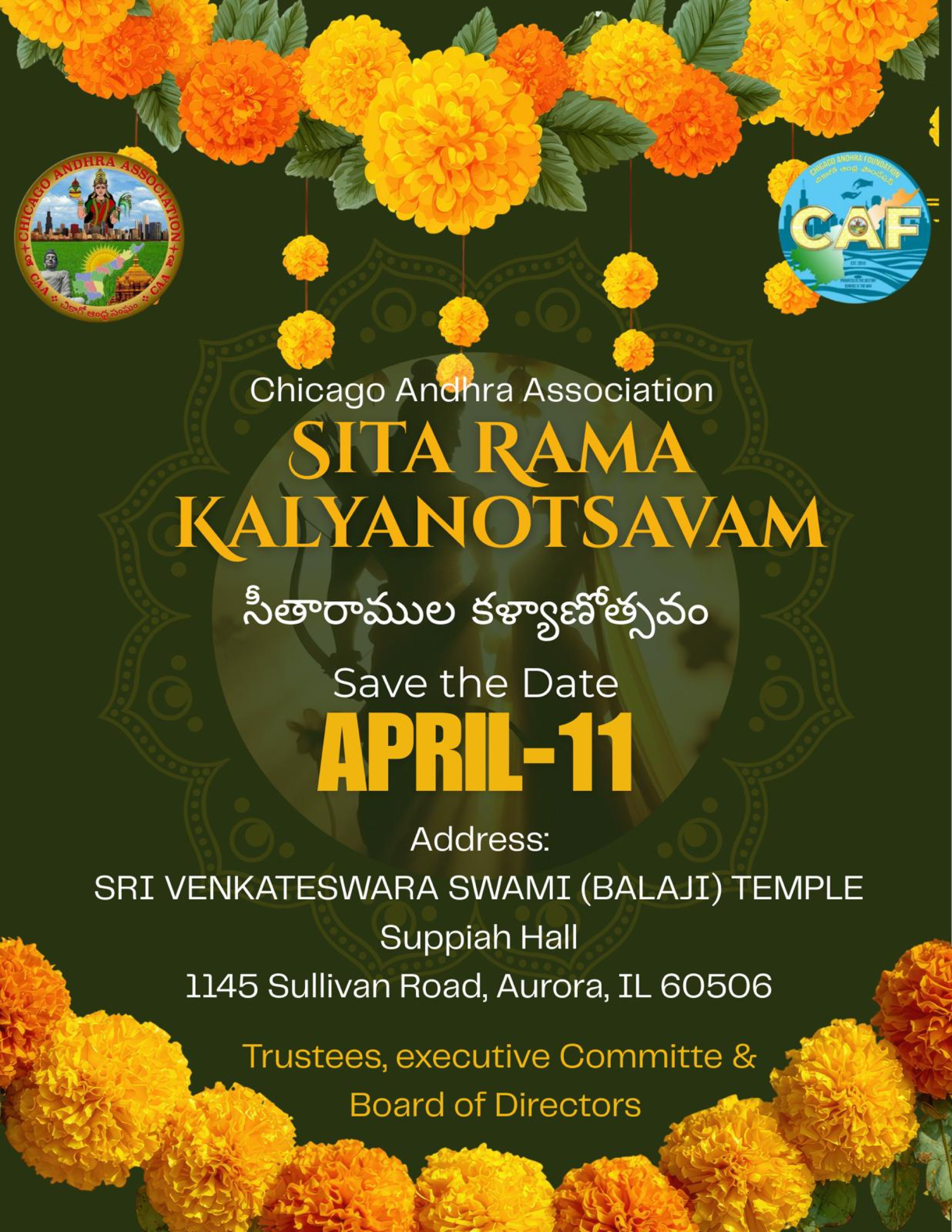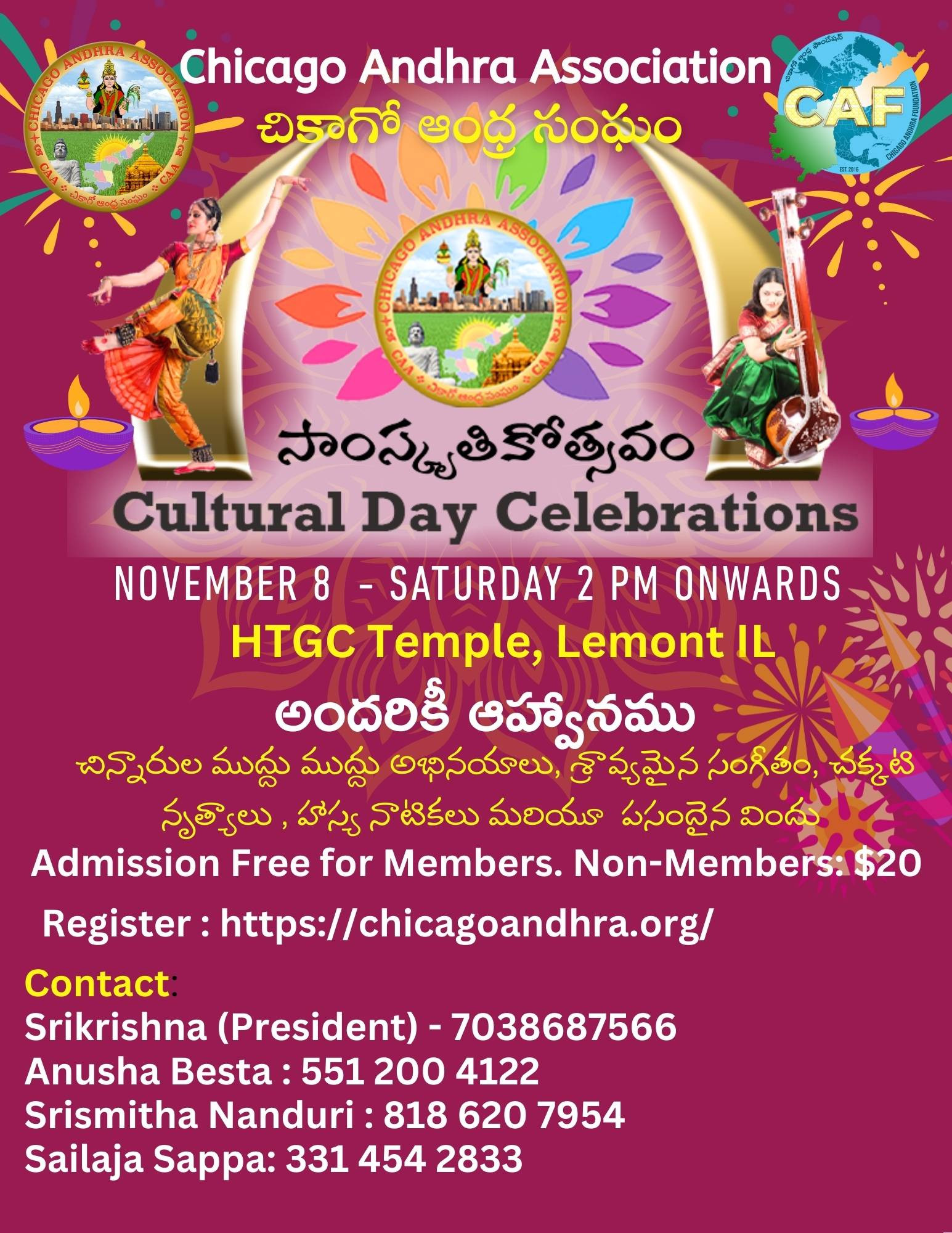Chicago Andhra Association (CAA) is a non-profit organization devoted to the awareness, promotion and development of South Asian bifurcated Indian southern state Andhra Pradesh and supported by the interested people irrespective of region and ethnics living in the United States headquartered in Chicago metro area.