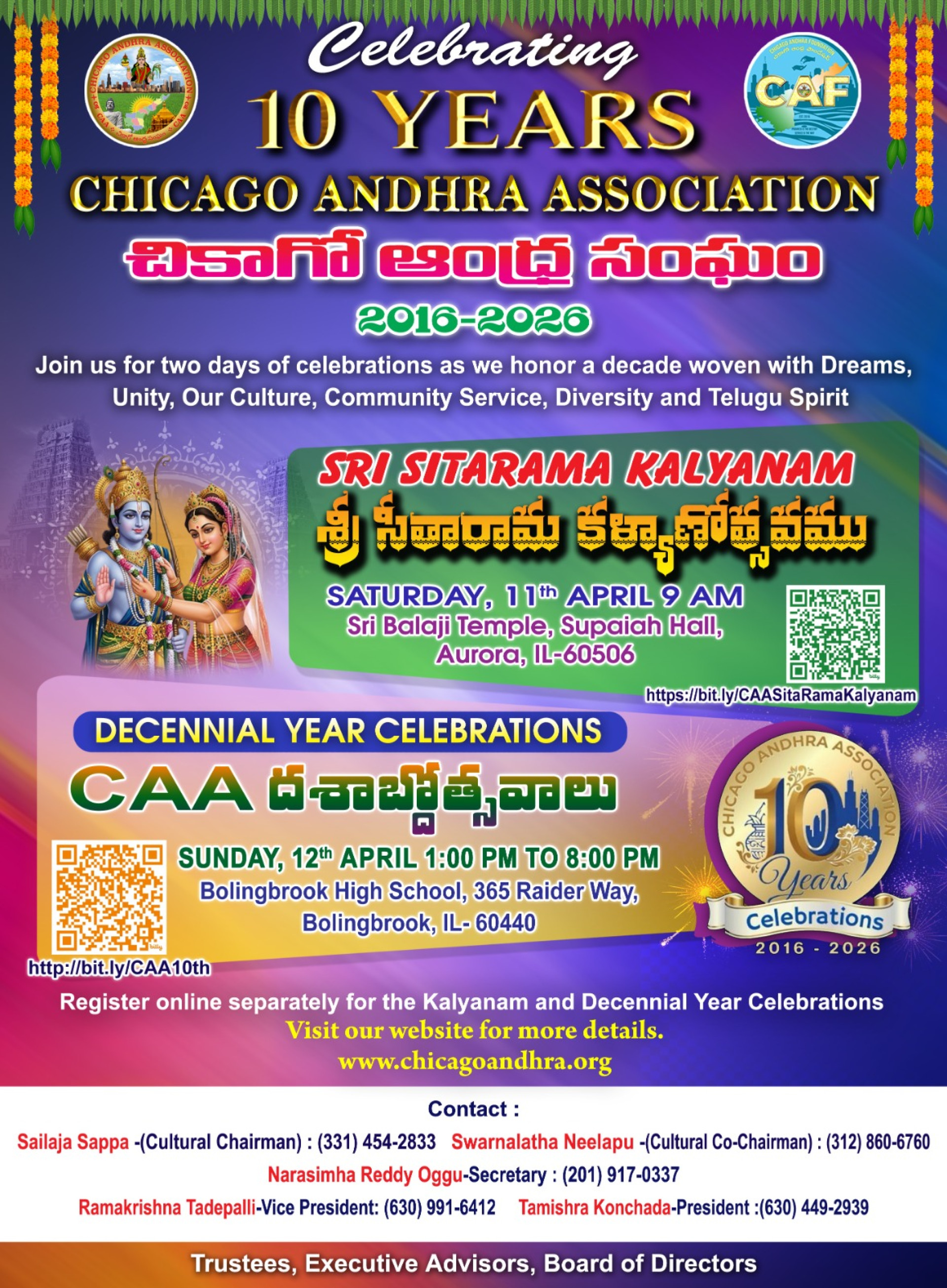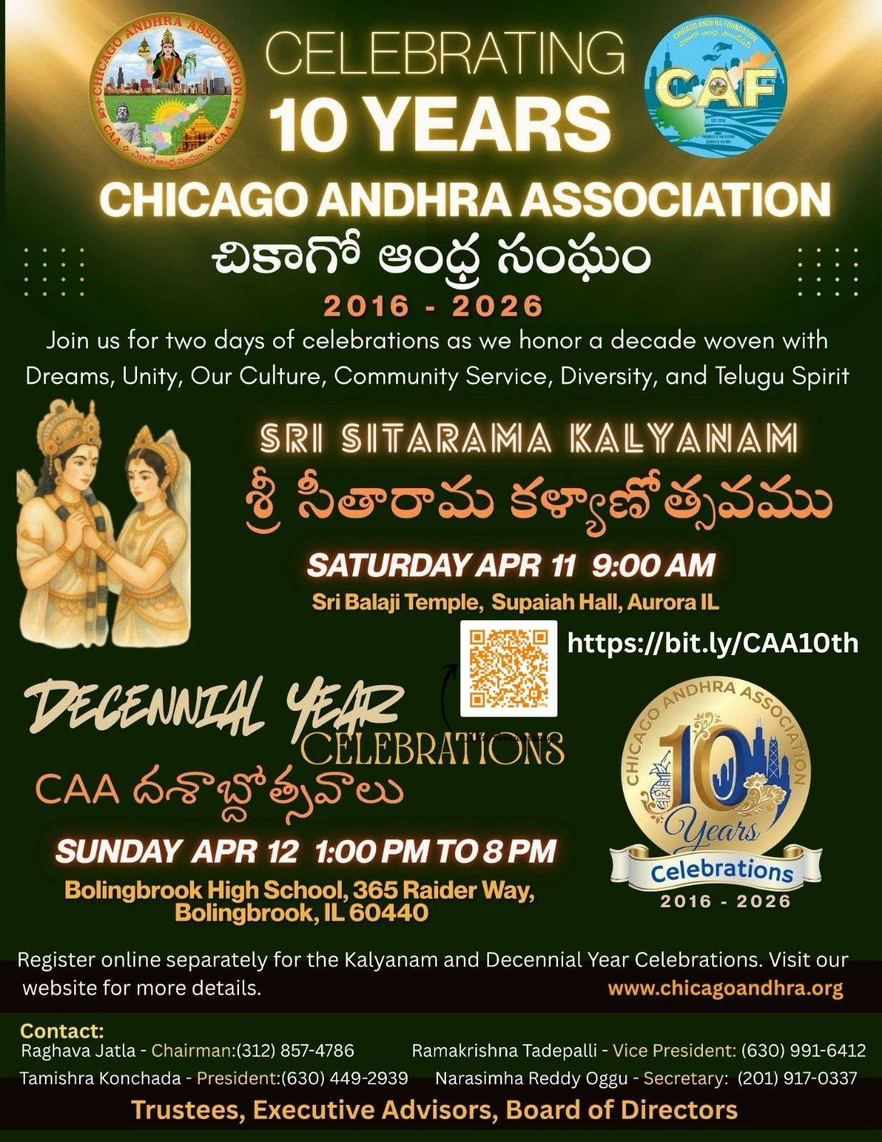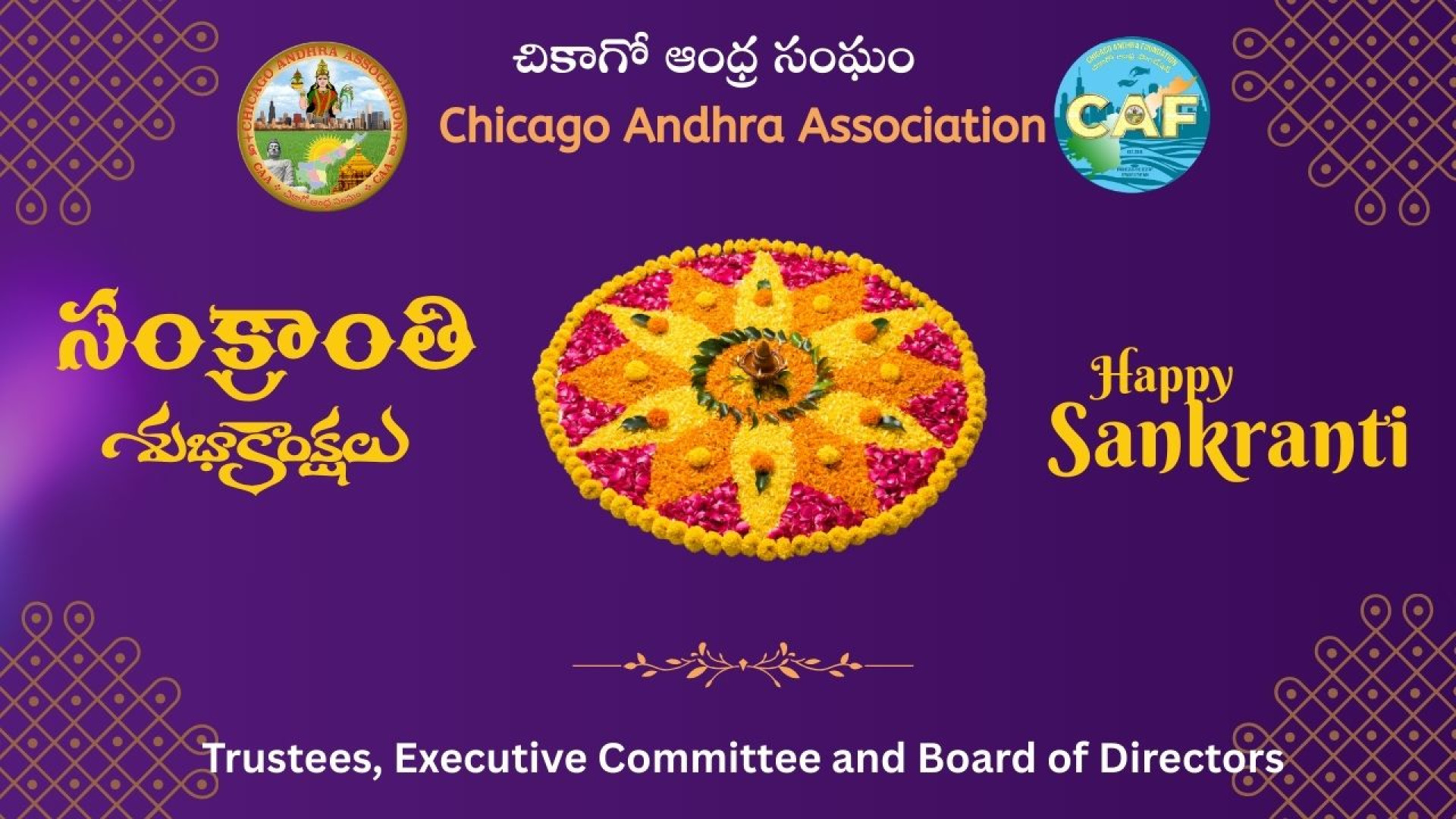 The Association was originally founded in 2016 and incorporated as a 501C3 Non-profit organization. CAA's primary objective is to support development in Andhra Pradesh and celebrate our culture in Chicago area. As a part of development and celebrating culture, CAA membership is open to all who have common interests. As a dedicated Andhra Pradesh oriented organization in the Chicago land area, CAA is actively involved in various local community events along with development effort in Andhra Pradesh.