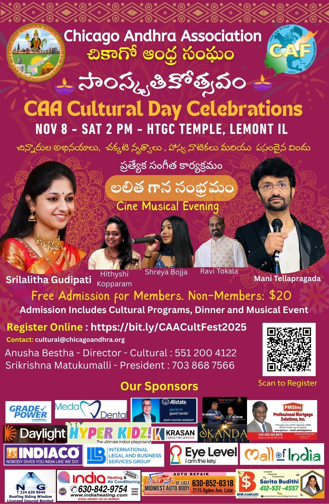 Cultural Day Celebrations Date: November 8th 2025 - 1:30 PM Location: Samarathi Auditorium, HTGC Temple, Lemont IL Me...